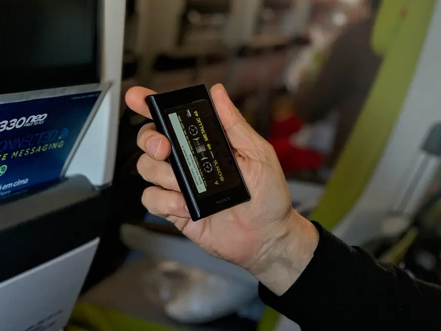 A Sony emprestou-me o gadget que lançou agora para comemorar os 40 anos deste seu ícone. É um pequeno aparelho Android uma espécie de pequeno telefone que não faz chamadas. Isso mesmo, tem acesso à Internet sem telefone. Dá pelo nome de NW-A105, já não digo mais nada sobre os nomes que a Sony dá às coisas. É felizmente muito mais pequeno que o Walkman original, serve para ouvir música, podemos instalar aplicações e até ver o mail se estivermos com rede wi fi, embora seja pouco prático com aquele tamanho. O que o aproxima do Walkman é a deliciosa imagem das cassetes que aparece quando pomos a tocar um ficheiro de música no leitor da Sony. A cassete muda conforme a música que pomos, e se andamos depressa para a frente ou para trás vemos mesmo a imagem das pequenas rodas de plástico a fazer o movimento, como faria uma cassete verdadeira, é lindo. Mas é só isso.